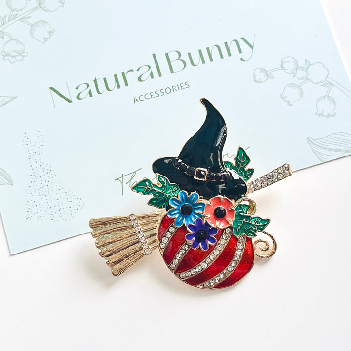 Halloween Pumpkin Witch Brooch