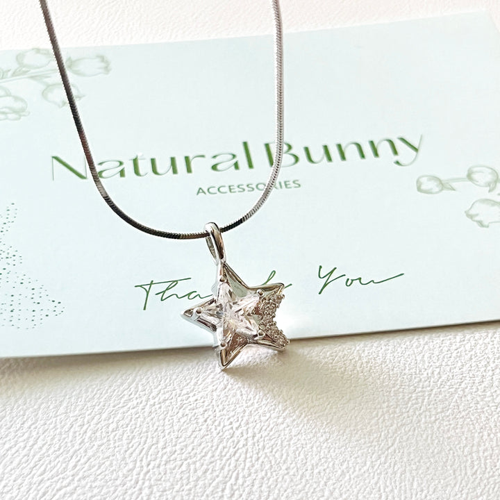 Capture celestial elegance with this Silvery Star Pendant Necklace, featuring a radiant zircon star that catches light beautifully.