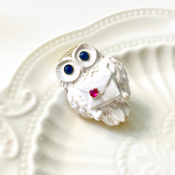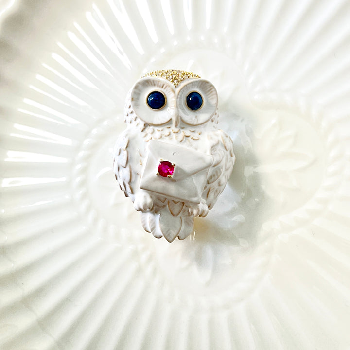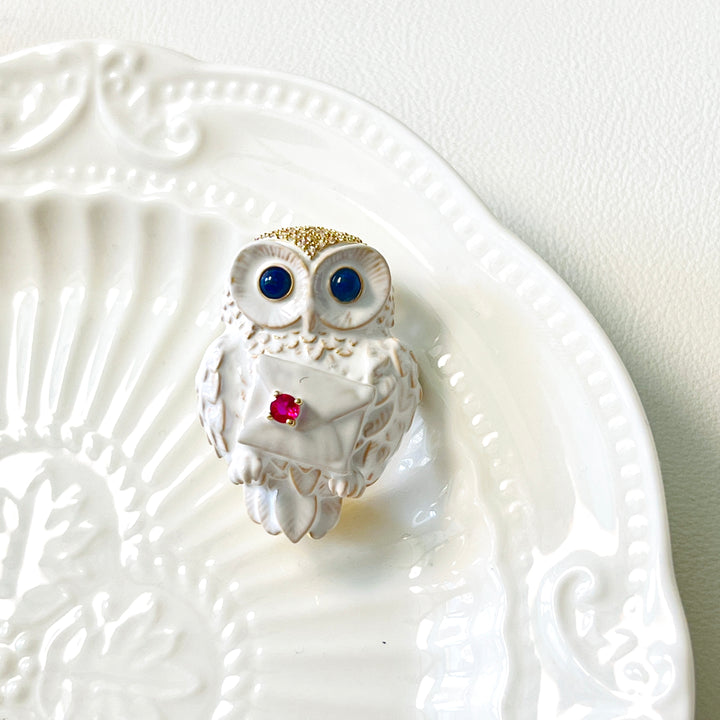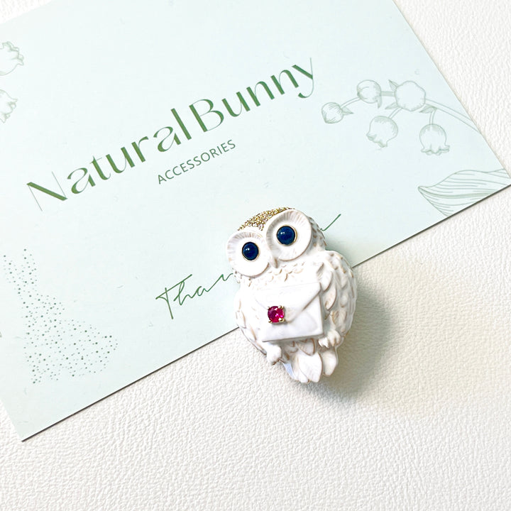 Capture the enchantment of magic world with this Snowy Owl With Letter Brooch. This charming accessory features a beautiful snowy owl delivering a tiny letter, adding a whimsical touch to your outfit.
