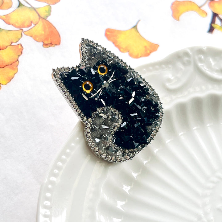 Perfect for cat lovers, this brooch offers a unique way to express your style with a touch of playfulness. Perfect for Halloween as well, this cat brooch is a charming accessory to celebrate the season.
