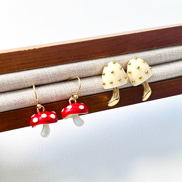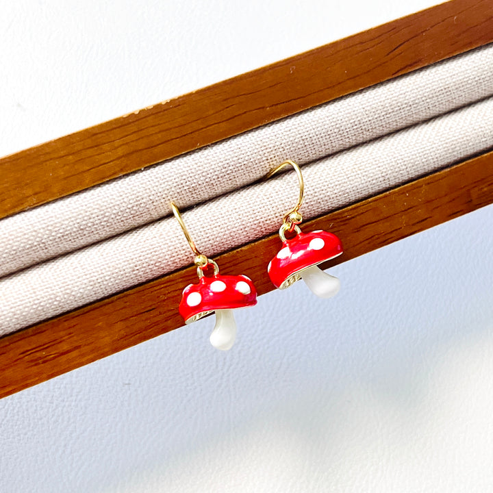 • Add a playful touch to any outfit with these Cute Red Mushroom Hook Earrings. Their vibrant red color and charming design make them a standout accessory, perfect for expressing your unique style.
