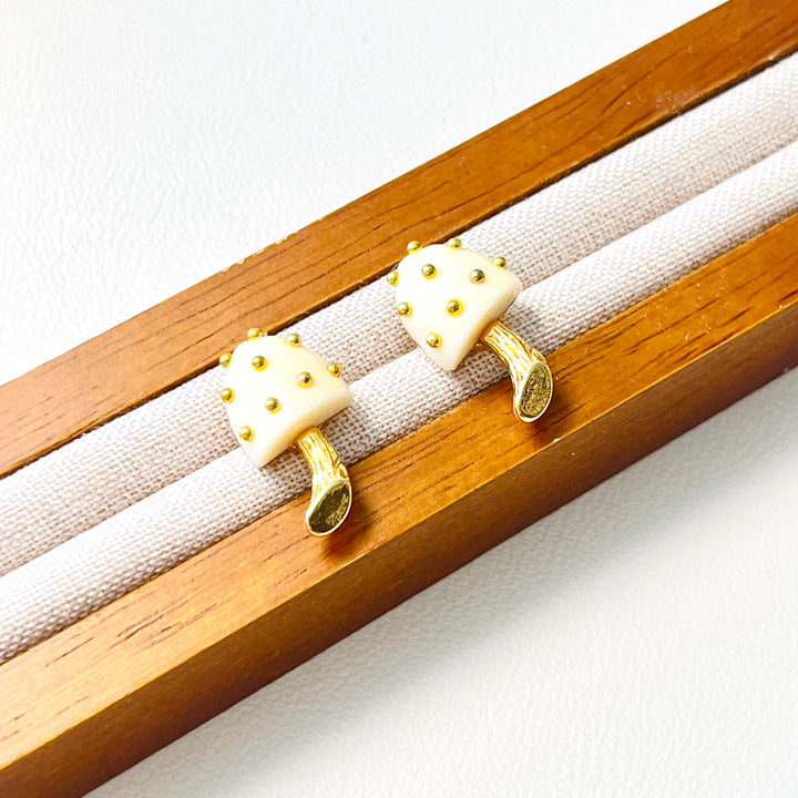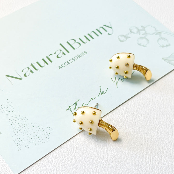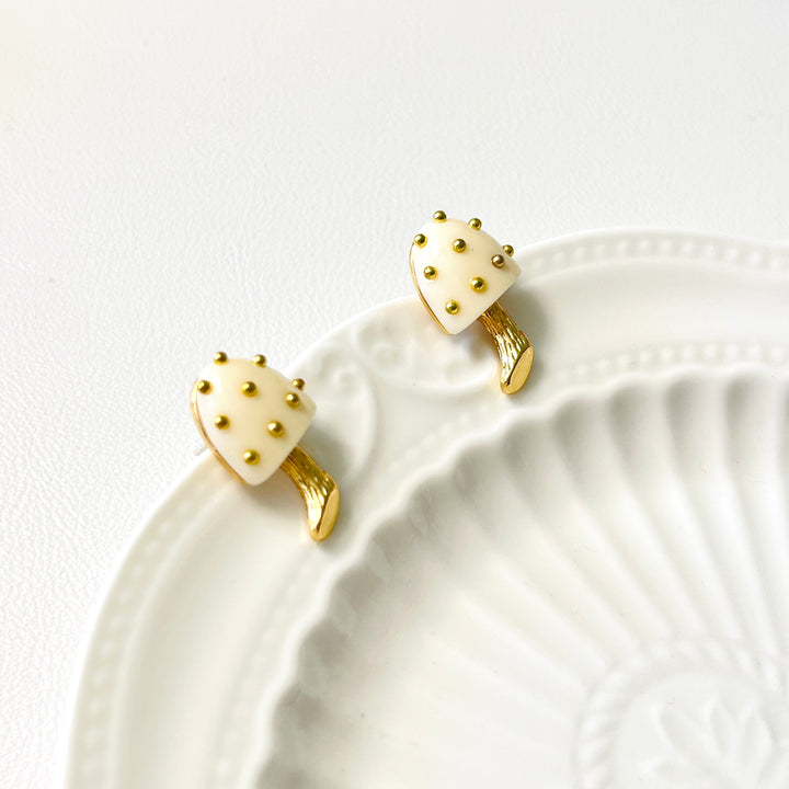 These Cute White Mushroom Stud Earrings capture the charm of harvest season with a delicate and natural design. They add a subtle touch of whimsy to any outfit.