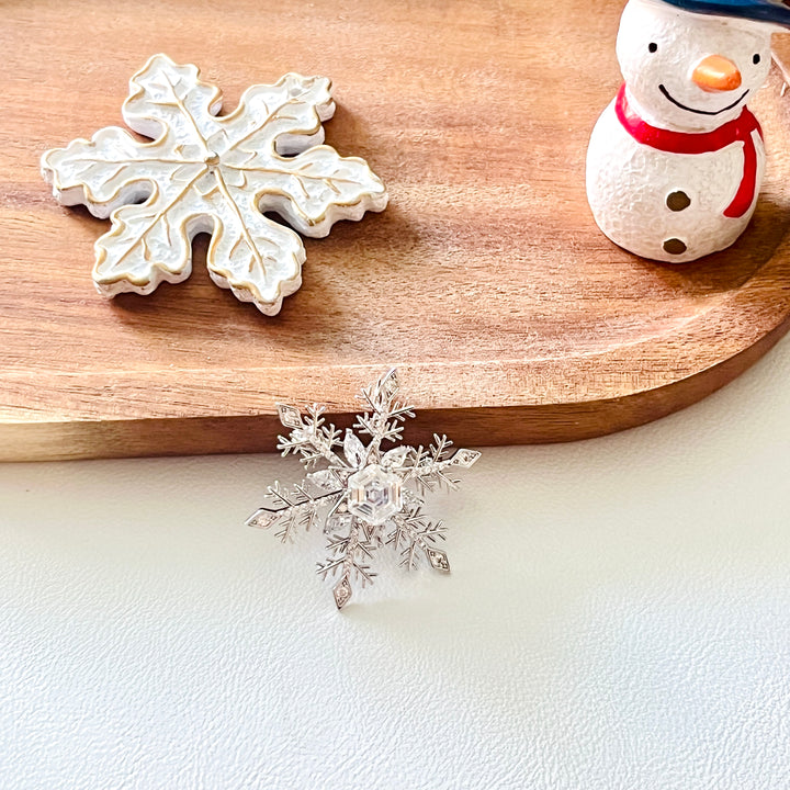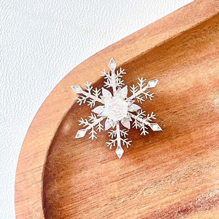 Crafted with precision to capture the intricate geometry of winter's most iconic form, this piece combines artisanal detail with playful functionality. Perfect for adding understated elegance to coats, scarves, or accessories in winter.