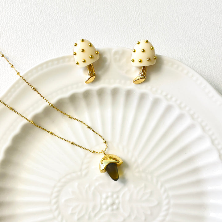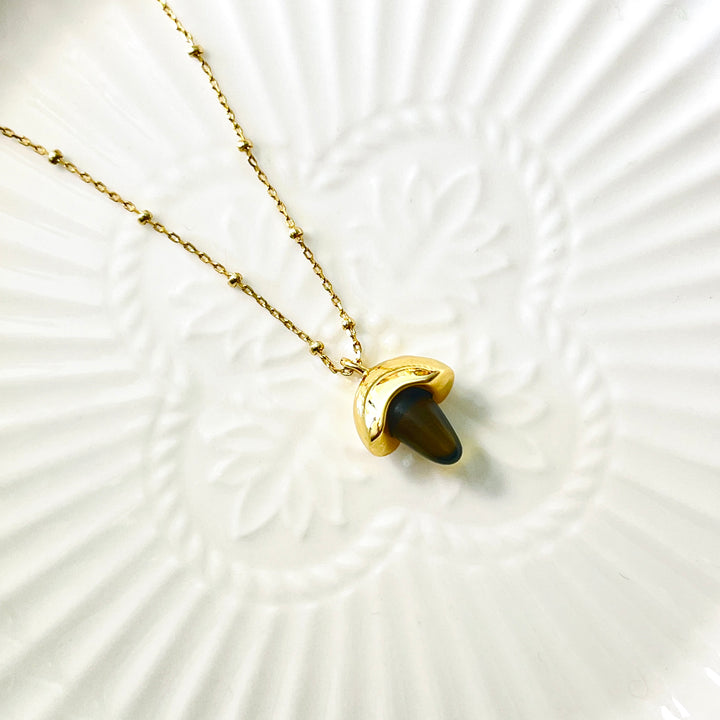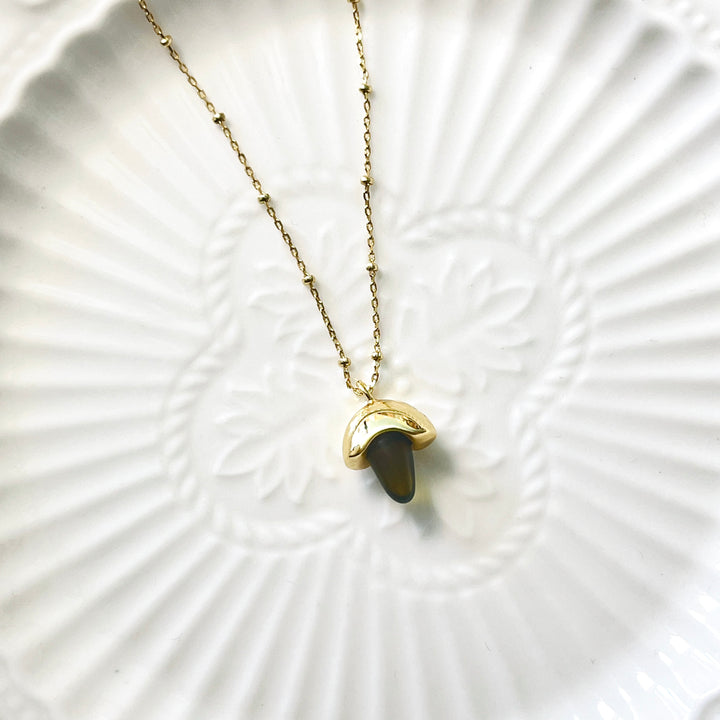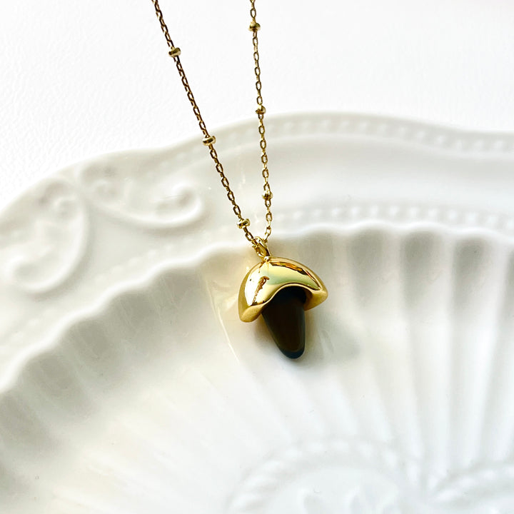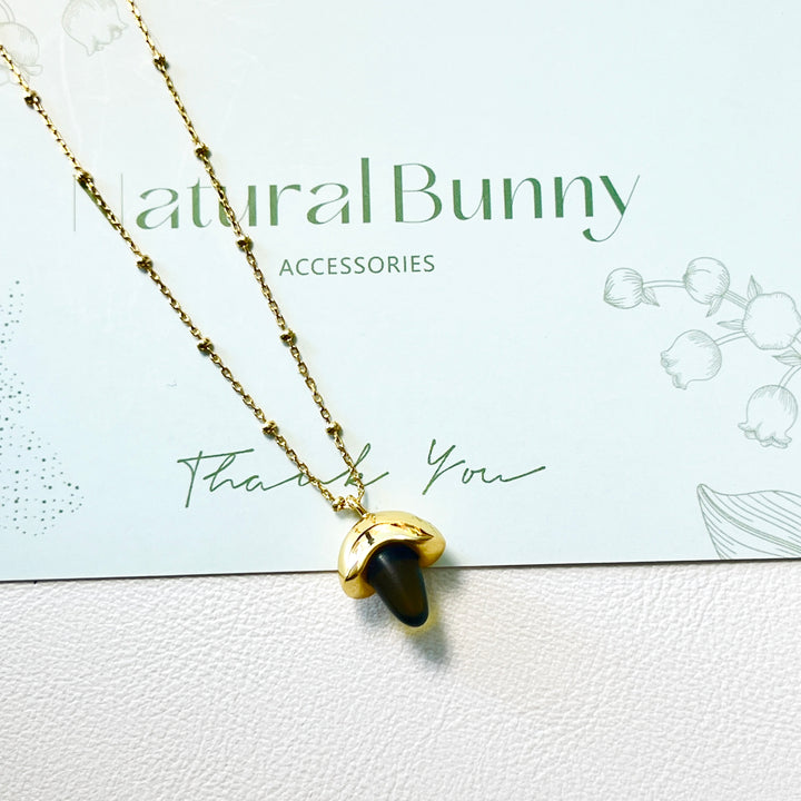 Add a touch of whimsy to your look with this Golden Mushroom Pendant Necklace. Its charming, gleaming design brings a playful sparkle to any outfit, perfect for those who love a bit of nature-inspired magic. Chic and eye-catching, it’s a fun way to express your unique style every day.