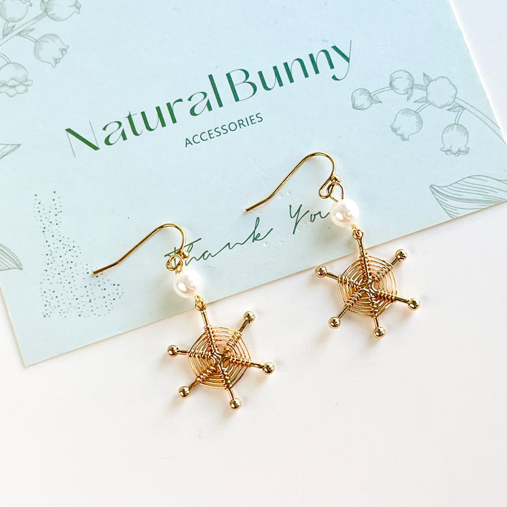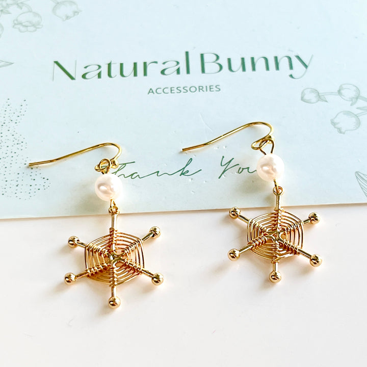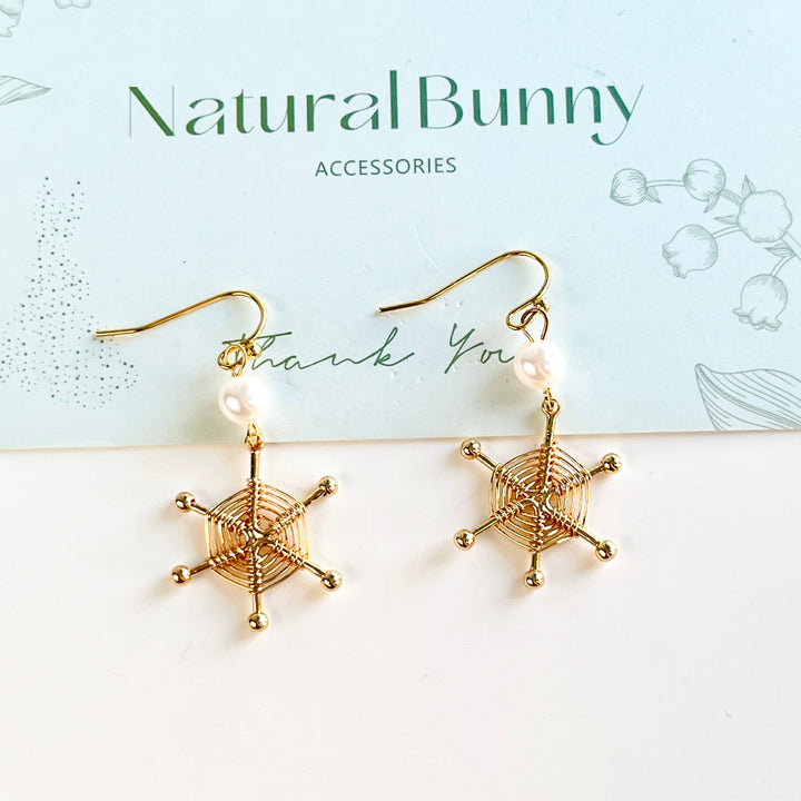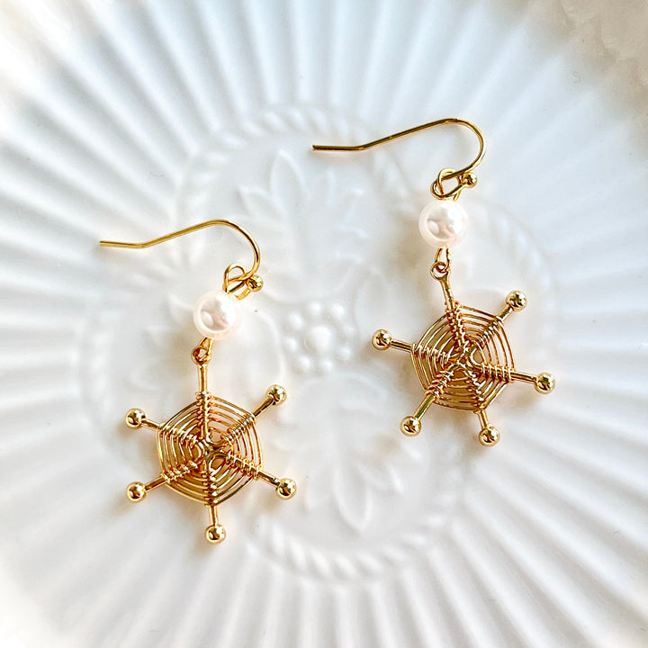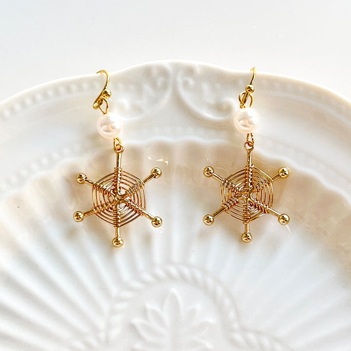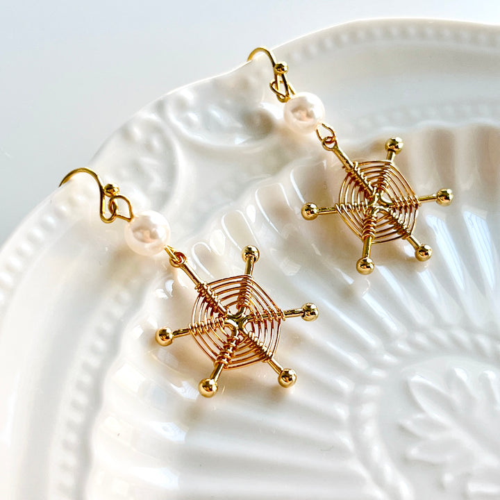 Elevate your Halloween look with these Spider Web Dangle Earrings. Featuring a delicate golden cobweb design paired with a single glass pearl, they add a spooky yet sophisticated touch to any outfit.