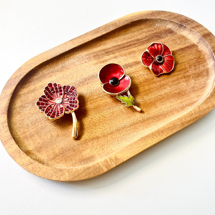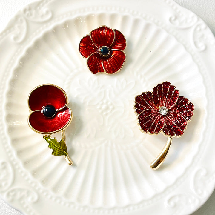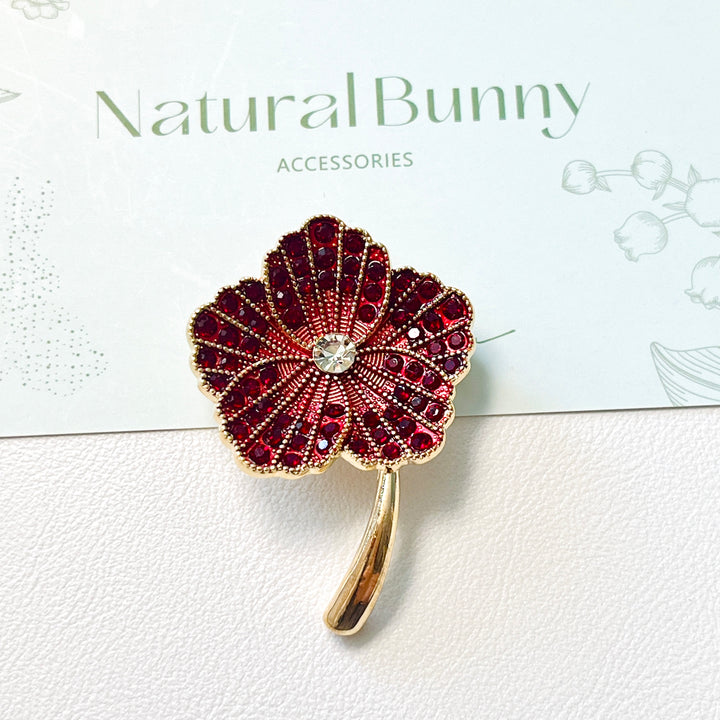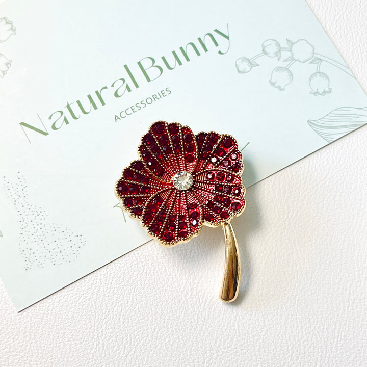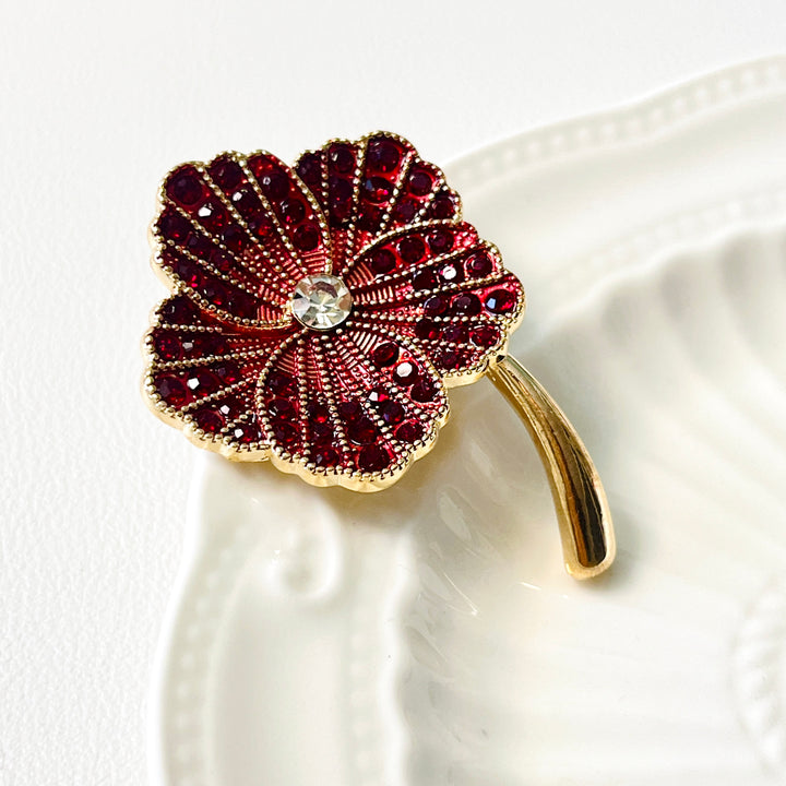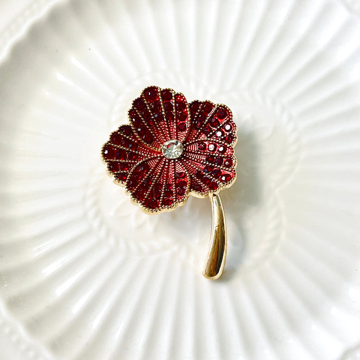 Add a touch of elegance with the Peaceful Poppy Flower Brooch, beautifully embellished with sparkling red rhinestones on each petal.