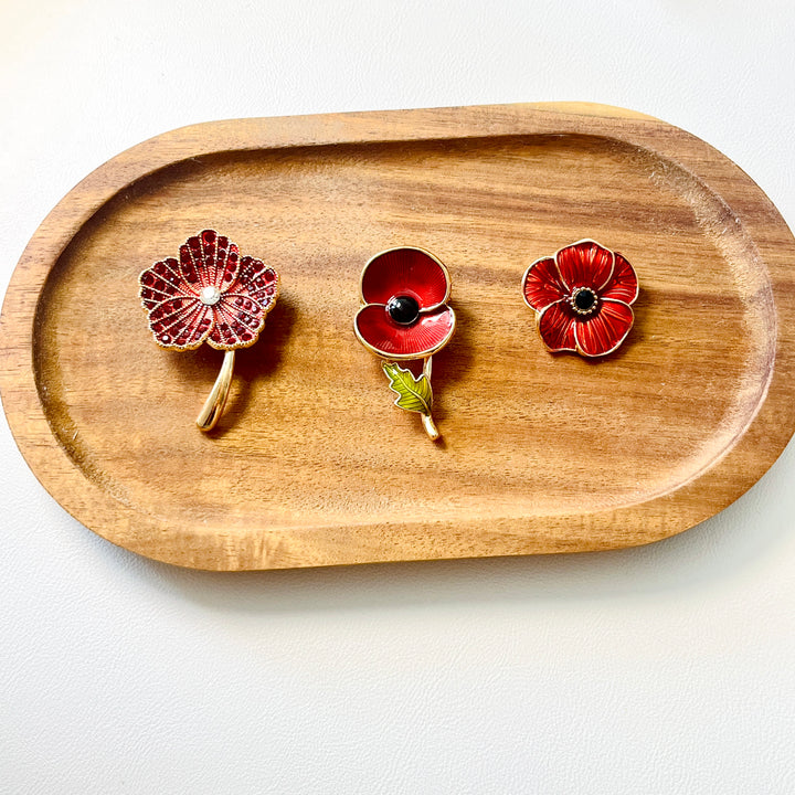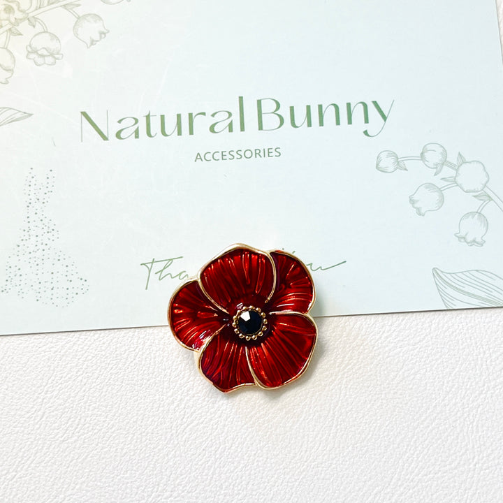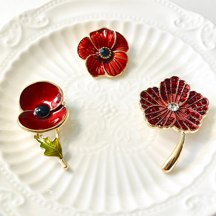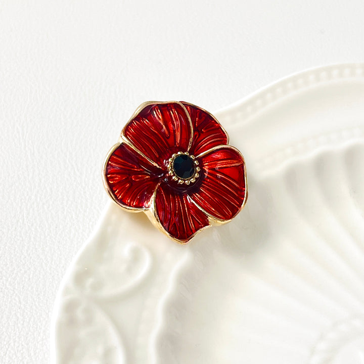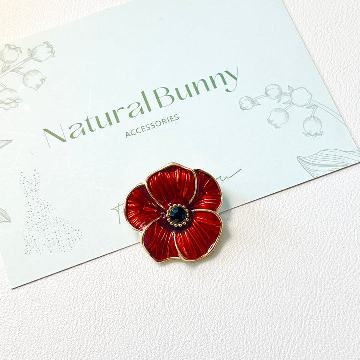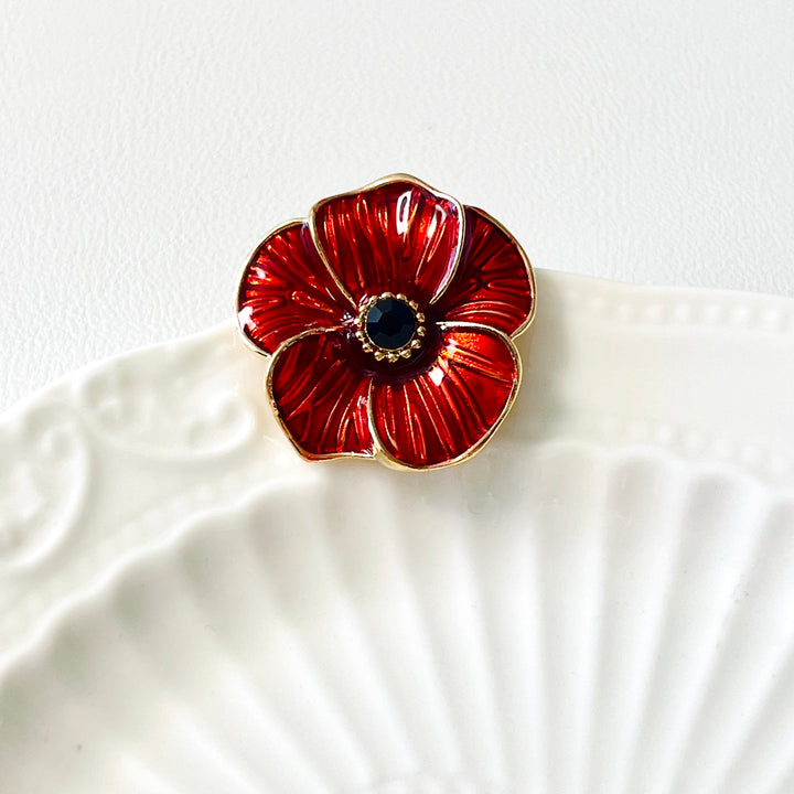 This Poppy Flower Brooch features a single elegant red flower, symbolizing remembrance and respect. Its vibrant design adds a meaningful touch to any outfit while showing your support for important causes.